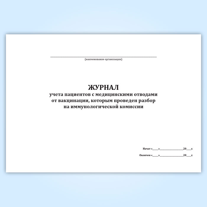 Журнал учета пациентов с медицинскими отводами от вакцинации, которым проведен разбор на иммунологической комиссии в Твери купить