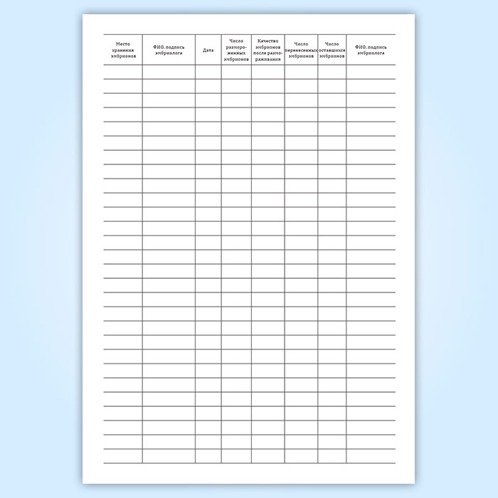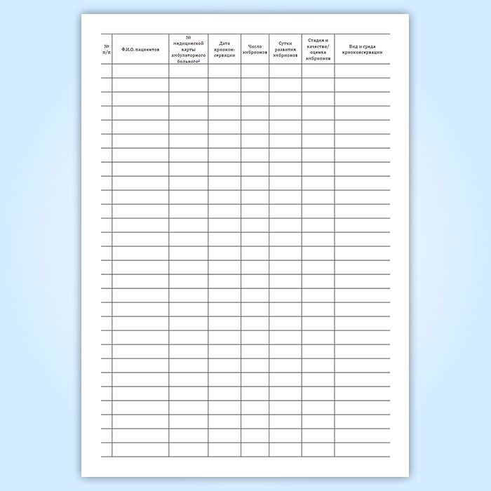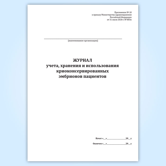 Журнал учета, хранения и использования криоконсервированных эмбрионов пациентов в Твери купить
