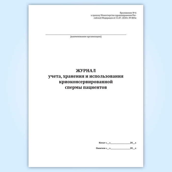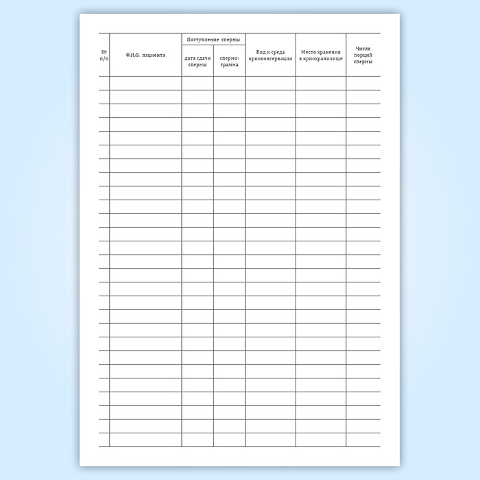 Журнал учета, хранения и использования криоконсервированной спермы пациентов в Твери купить