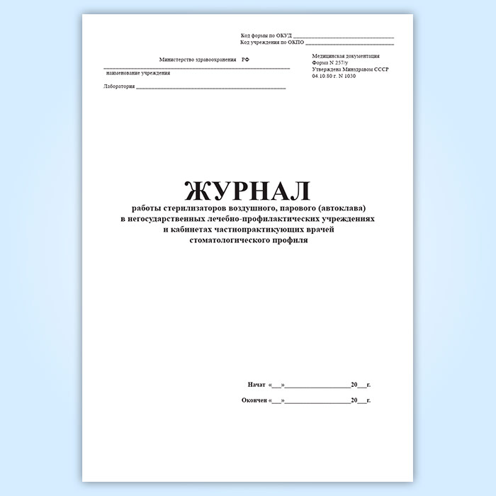 Журнал работы стерилизаторов воздушного, парового (автоклава) в негосударственных лечебно-профилактических учреждениях и кабинетах частнопрактикующих врачей стоматологического профиля (форма 257/у) в Твери купить