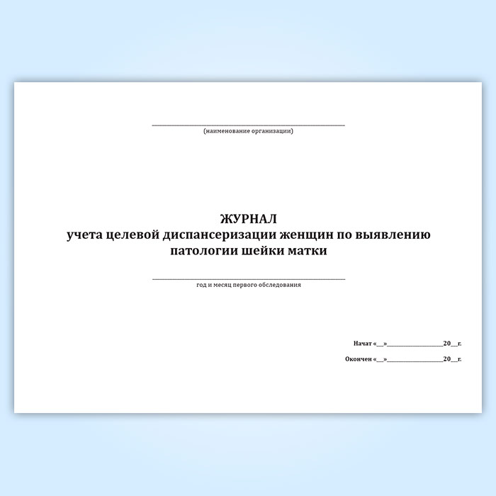 Журнал учета целевой диспансеризации женщин по выявлению патологии шейки матки в Твери купить