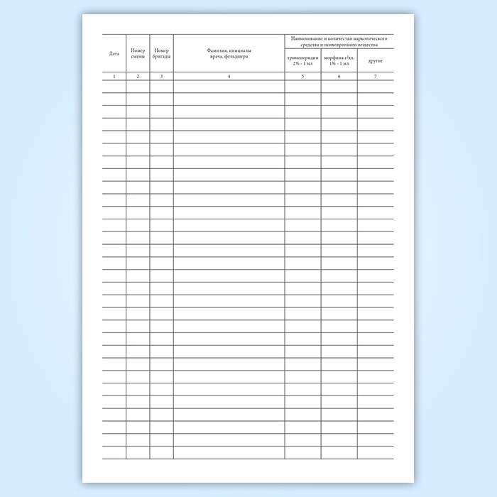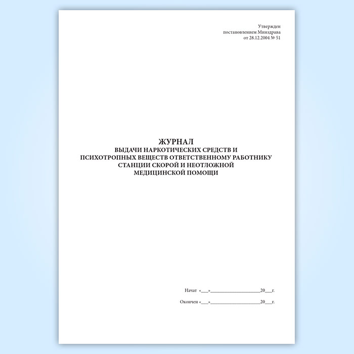 Журнал выдачи наркотических средств и психотропных веществ ответственному работнику станции скорой и неотложной медицинской помощи в Твери купить