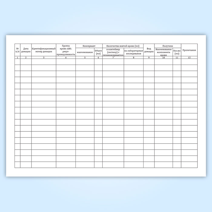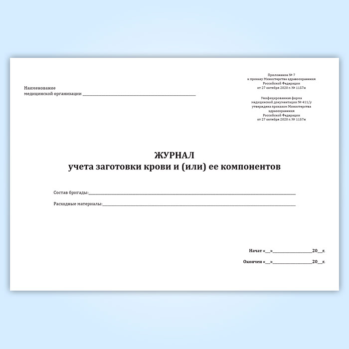 Журнал учета заготовки крови и (или) ее компонентов (форма № 411/у) в Твери купить