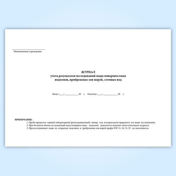 Журнал учета результатов исследований воды поверхностных водоемов, прибрежных зон морей, сточных вод (форма № 324-у) в Твери купить