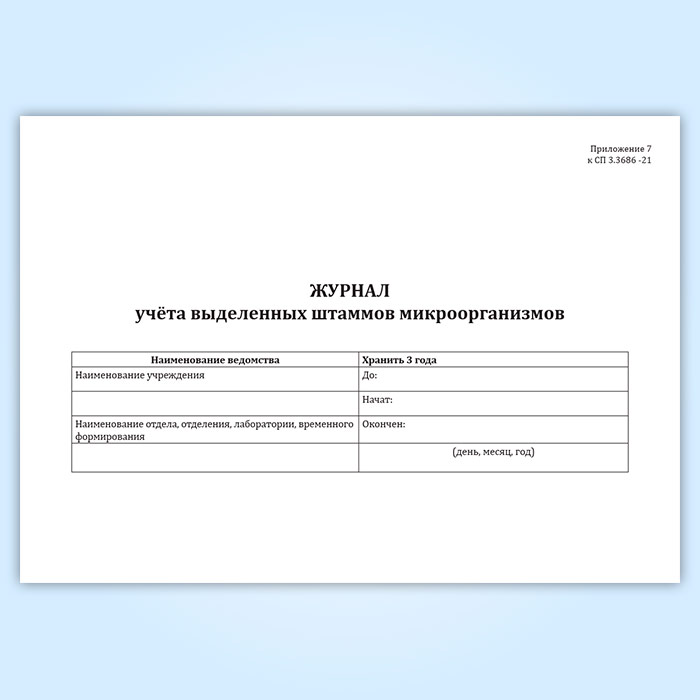 Журнал учета выделенных штаммов микроорганизмов (СанПиН 3.3686-21) в Твери купить