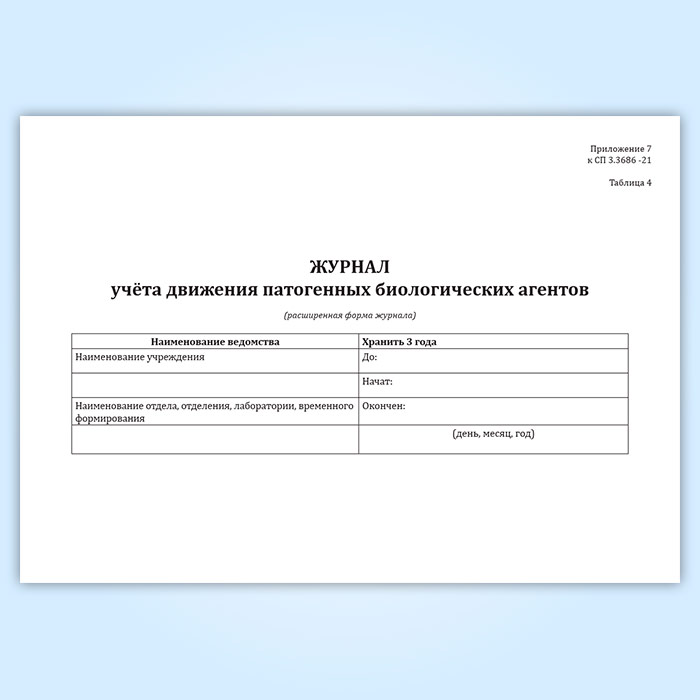 Журнал учета движения патогенных биологических агентов (СанПиН 3.3686-21, расширенная форма) в Твери купить