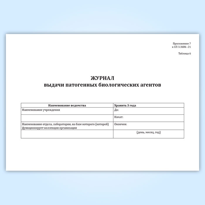 Журнал выдачи патогенных биологических агентов (СанПиН 3.3686-21) в Твери купить