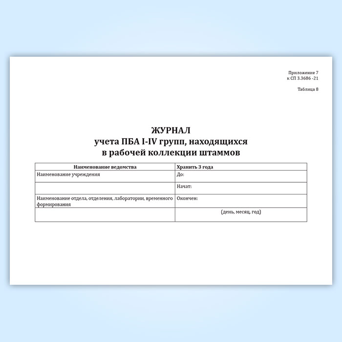 Журнал учета ПБА I-IV групп, находящихся в рабочей коллекции штаммов в Твери купить