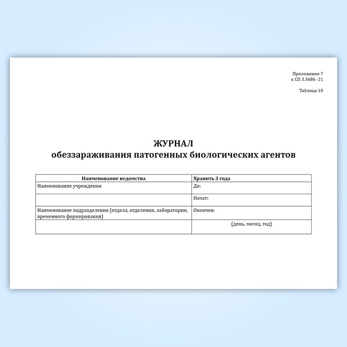 Журнал обеззараживания патогенных биологических агентов (СанПиН 3.3686-21) в Твери купить