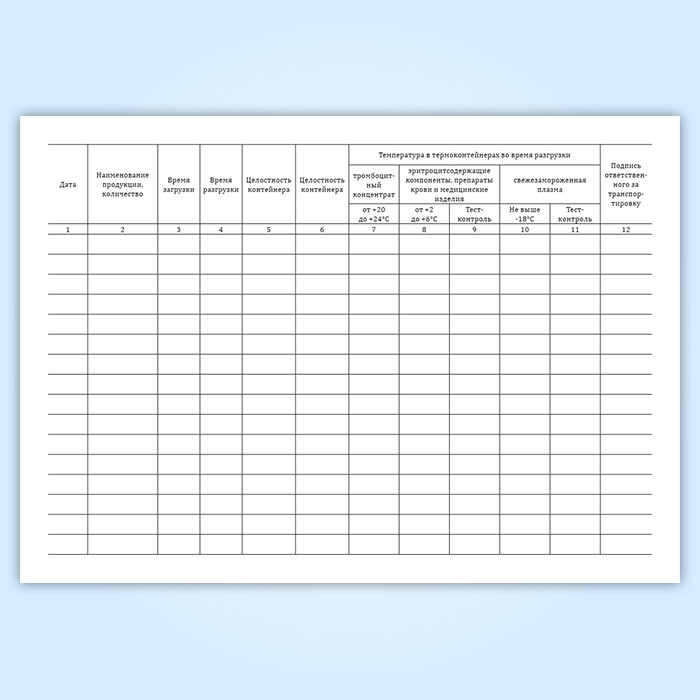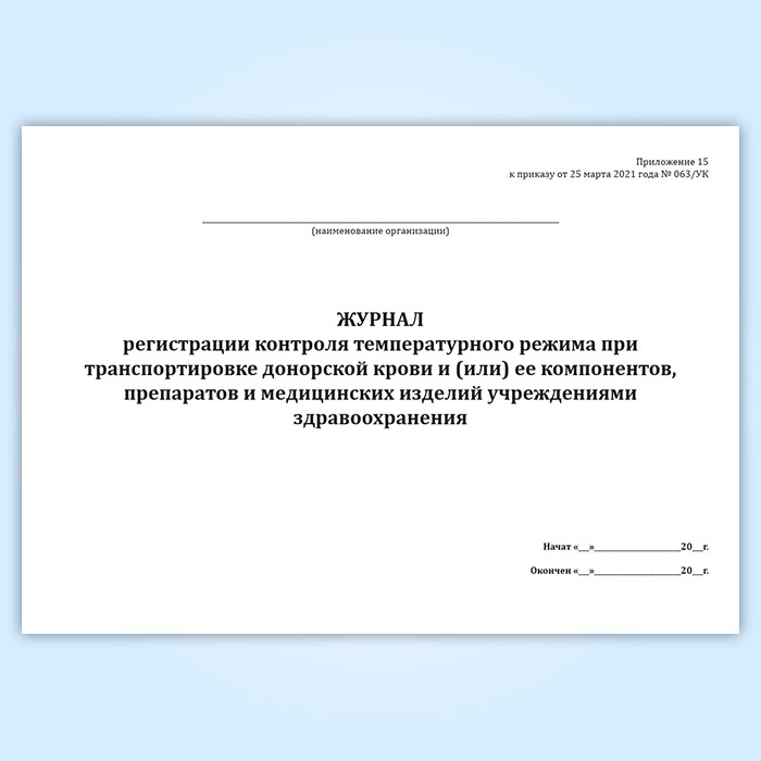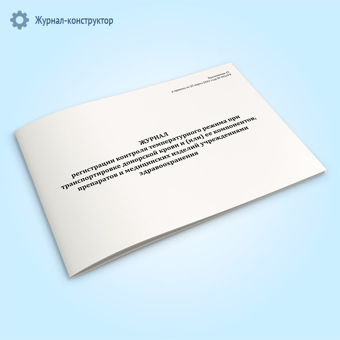 Журнал регистрации контроля температурного режима при транспортировке донорской крови и (или) ее компонентов, препаратов и медицинских изделий учреждениями здравоохранения в Твери купить
