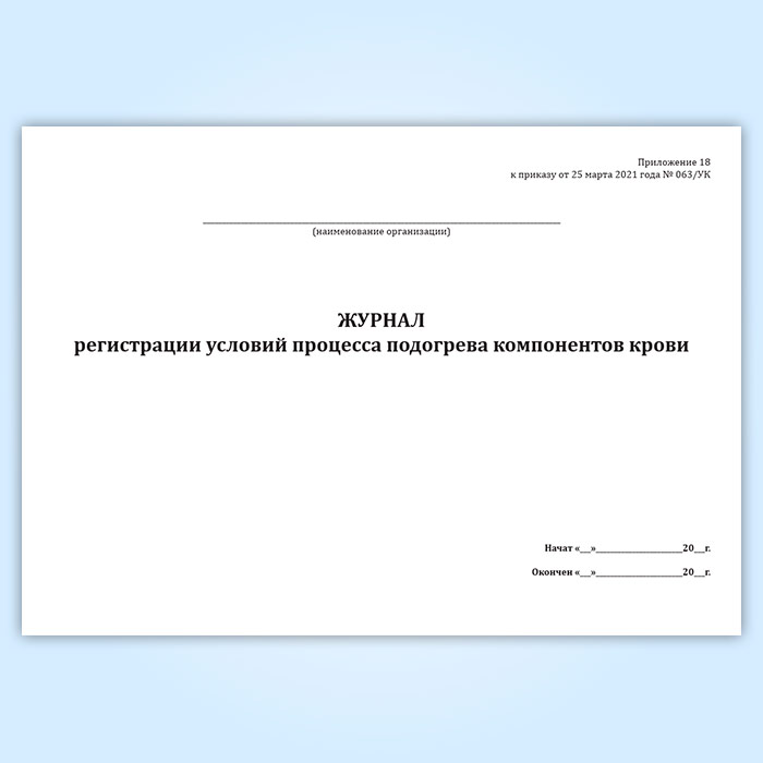 Журнал регистрации условий процесса подогрева компонентов крови в Твери купить