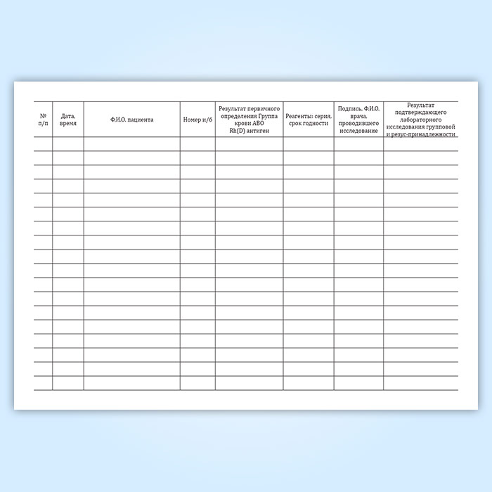 Журнал регистрации первичного определения группы крови в Твери купить