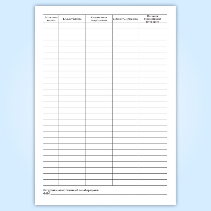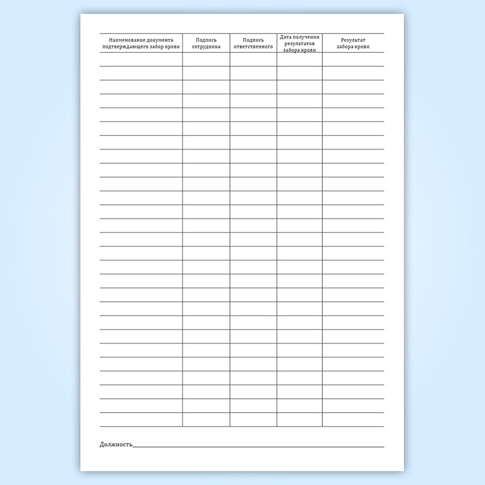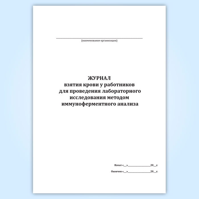 Журнал взятия крови у работников для проведения лабораторного исследования методом иммуноферментного анализа в Твери купить