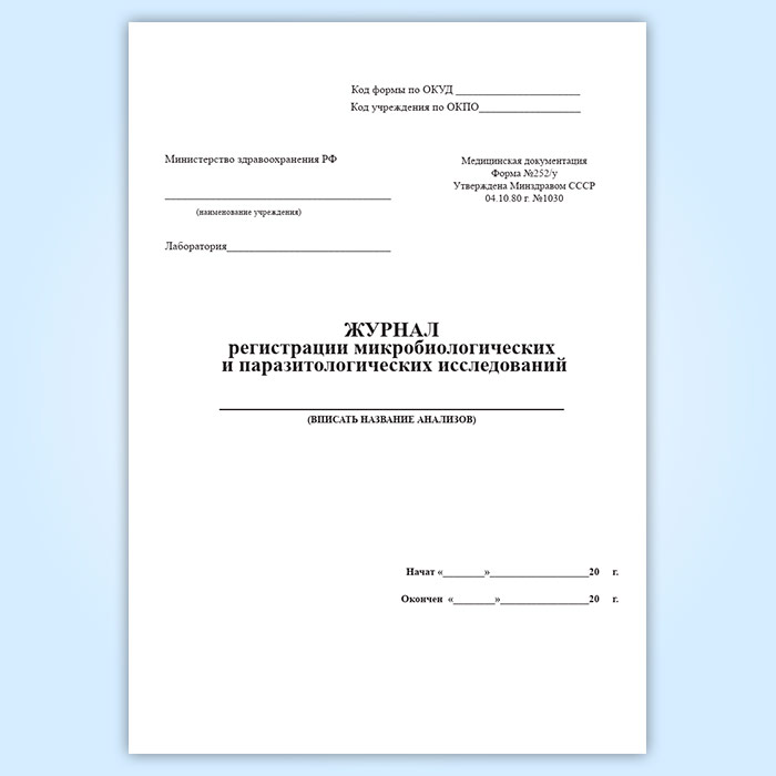 Журнал регистрации микробиологических и паразитологических исследований (форма 252/у) в Твери купить
