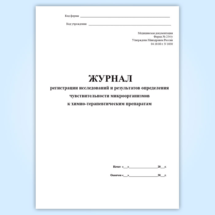 Журнал регистрации исследований и результатов определения чувствительности микроорганизмов к химио-терапевтическим препаратам (форма 254/у) в Твери купить