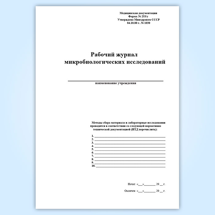 Рабочий журнал микробиологических исследований (форма 253/у) в Твери купить