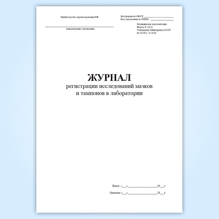 Журнал регистрации исследований мазков и тампонов в лаборатории (форма 185/у) в Твери купить