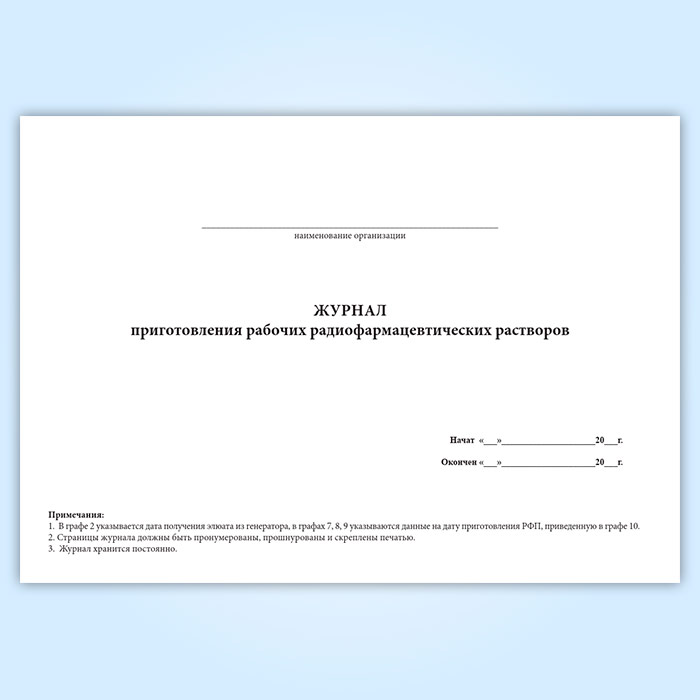 Журнал приготовления рабочих радиофармацевтических растворов в Твери купить