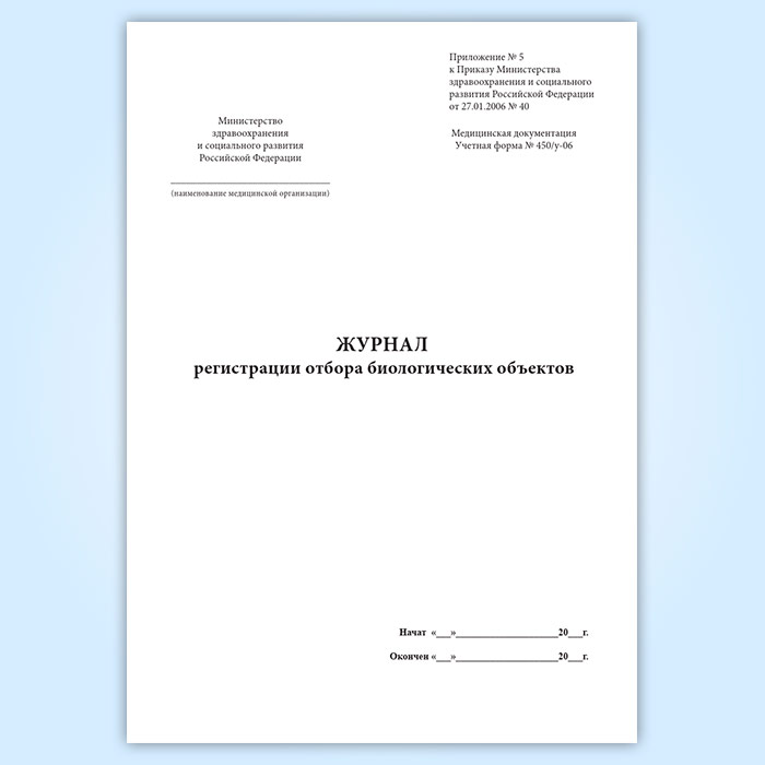 Журнал регистрации отбора биологических объектов (форма 450у-06) в Твери купить