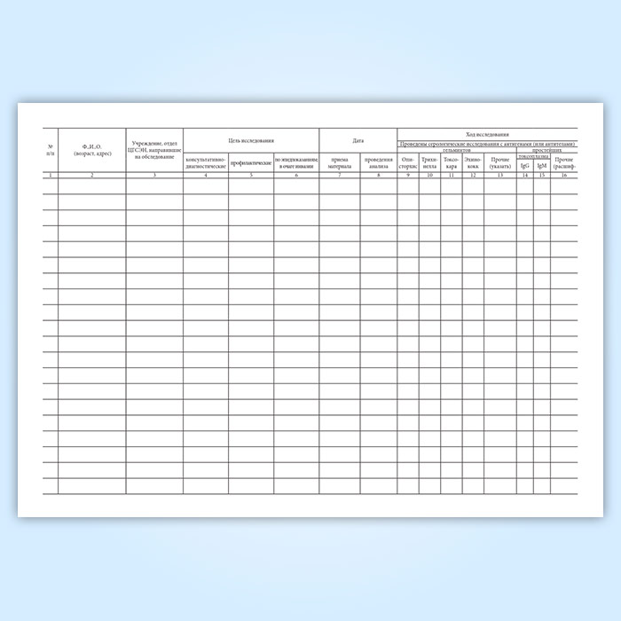 Журнал учета серологических исследований на паразитарные заболевания в Твери купить