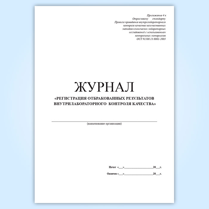Журнал регистрации отбракованных результатов внутрилабораторного контроля качества в Твери купить