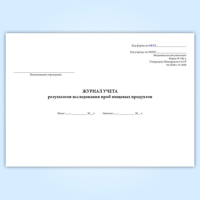 Журнал учета результатов исследования проб пищевых продуктов (форма 346/у) в Твери купить