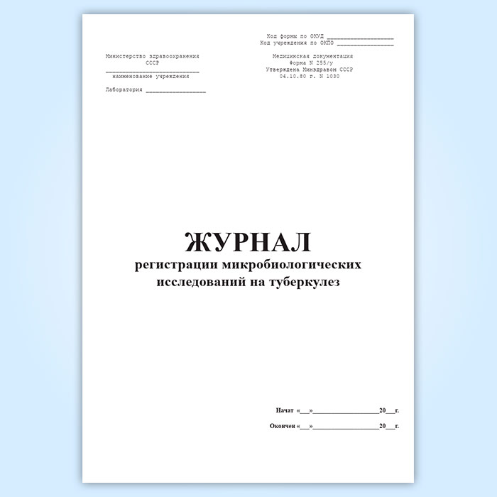 Журнал регистрации микробиологических исследований на туберкулез (форма 255/у) в Твери купить
