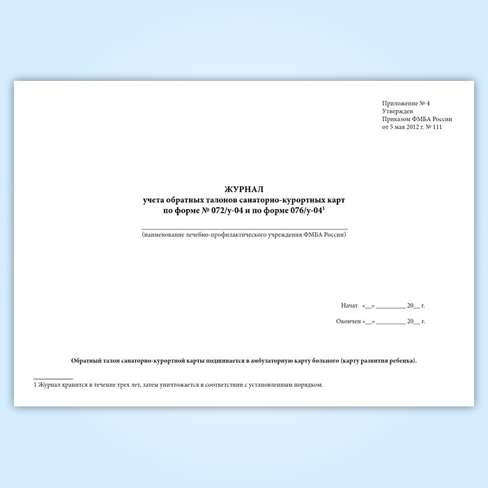 Журнал учета обратных талонов санаторно-курортных карт по форме (№ 072/у-04 и по форме 076/у-04 ) в Твери купить