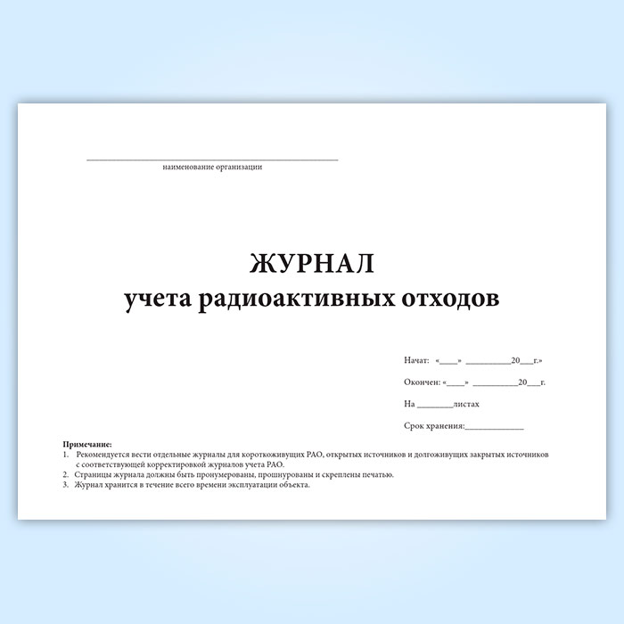 Журнал учета радиоактивных отходов (СанПиН 2.6.1.3288-15) в Твери купить