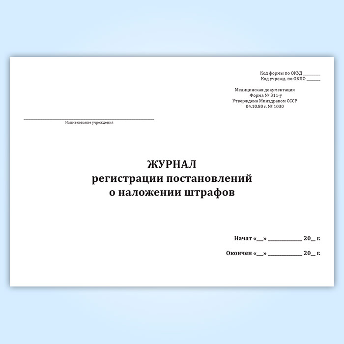 Журнал регистрации постановлений о наложении штрафов (форма 311-у) в Твери купить