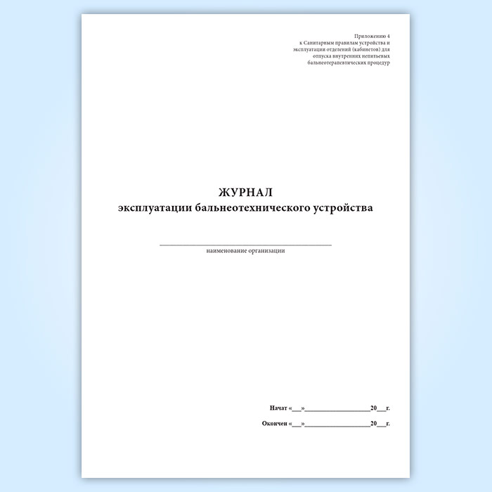 Журнал эксплуатации бальнеотехнического устройства в Твери купить