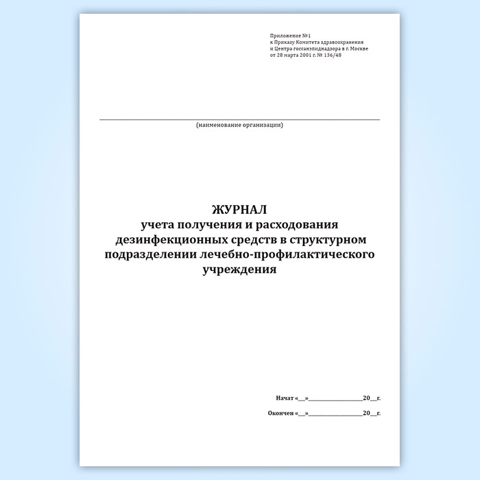Журнал учета получения и расходования дезинфекционных средств в структурном подразделении лечебно-профилактического учреждения в Твери купить