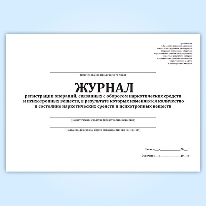 Журнал регистрации операций, связанных с оборотом наркотических средств и психотропных веществ, в результате которых изменяются количество и состояние наркотических средств и психотропных веществ в Твери купить