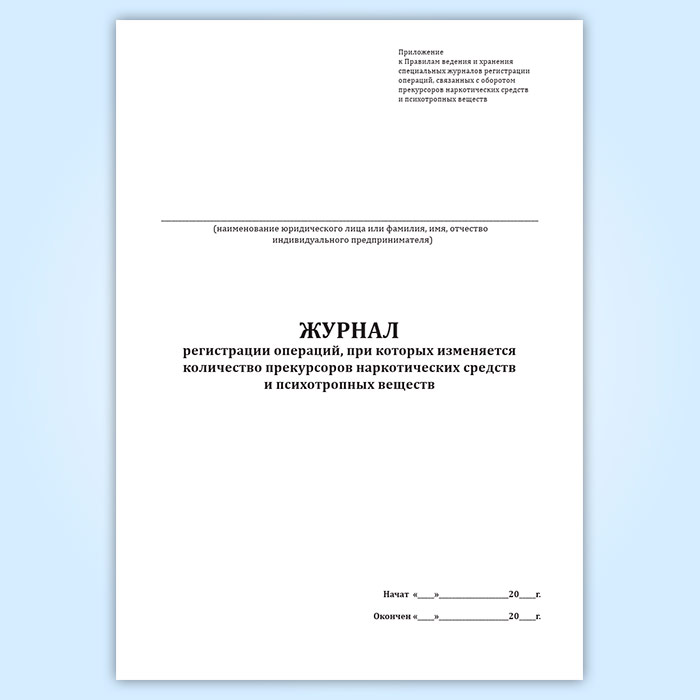 Журнал регистрации операций, при которых изменяется количество прекурсоров наркотических средств и психотропных веществ в Твери купить