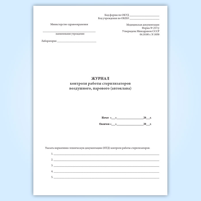 Журнал контроля работы стерилизаторов воздушного, парового (автоклава) (форма 257/у) в Твери купить