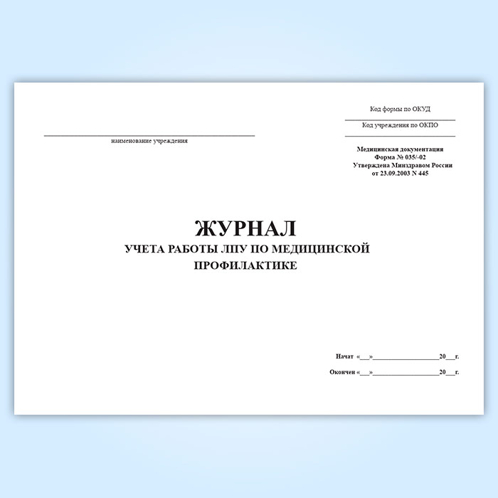 Журнал учета работы ЛПУ по медицинской профилактике (форма № 035/-02) в Твери купить