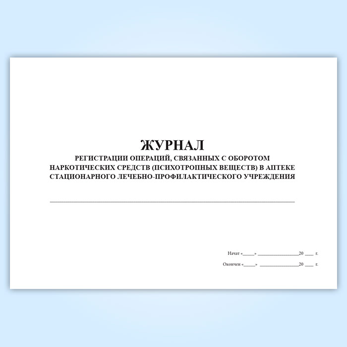 Журнал регистрации операций, связанных с оборотом наркотических средств и психотропных веществ в аптеке медицинской организации в Твери купить