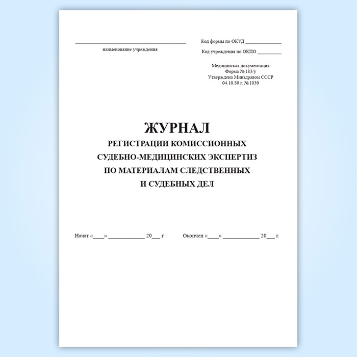 Журнал регистрации комиссионных судебно-медицинских экспертиз по материалам следственных и судебных дел (форма 183/у) в Твери купить