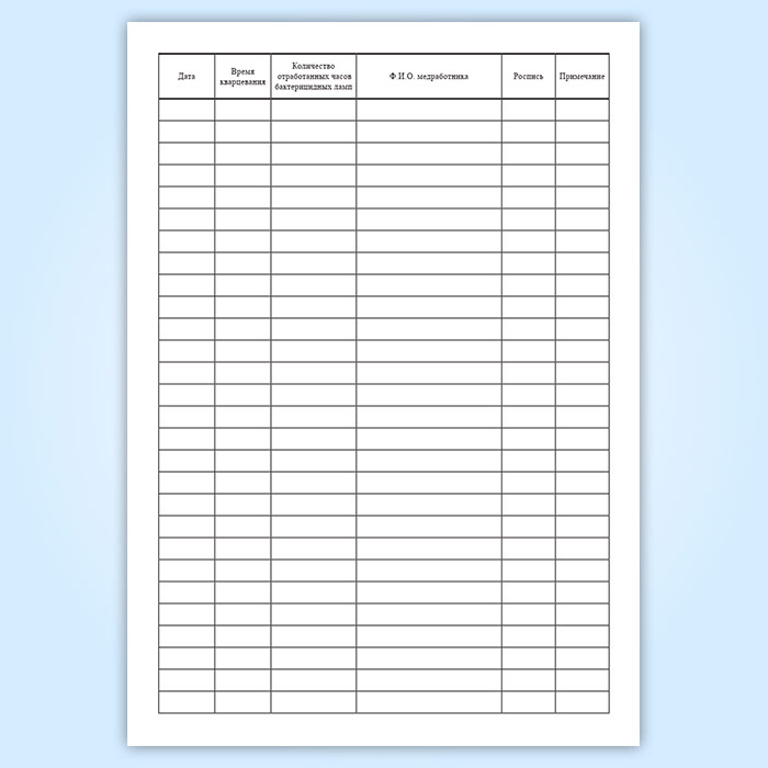 Журнал регистрации и контроля работы бактерицидной лампы в Твери купить