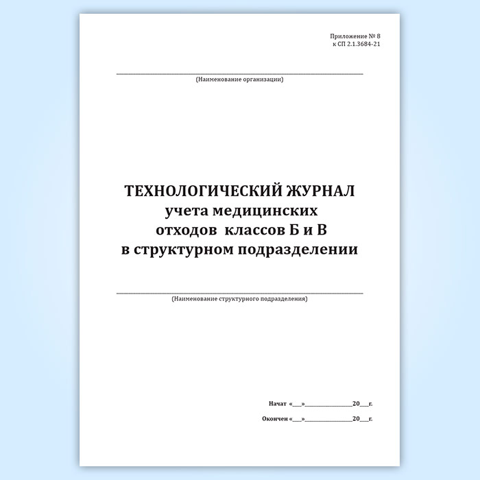 Технологический журнал учета медицинских отходов классов Б и В в структурном подразделении в Твери купить