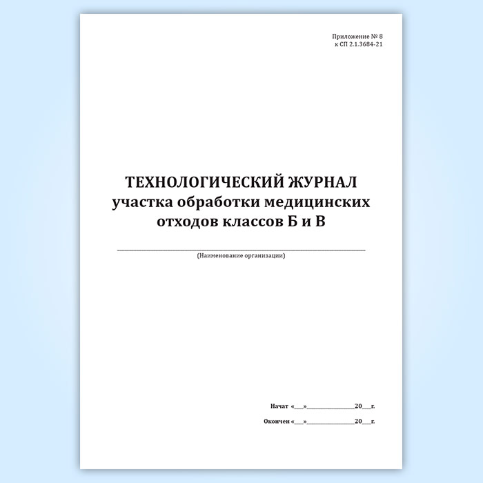 Технологический журнал участка обработки медицинских отходов классов Б и В в Твери купить