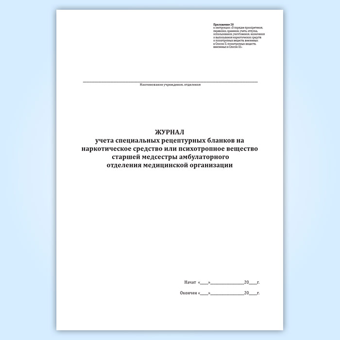 Журнал учета специальных рецептурных бланков на наркотическое средство или психотропное вещество старшей медсестры амбулаторного отделения медицинской организации в Твери купить