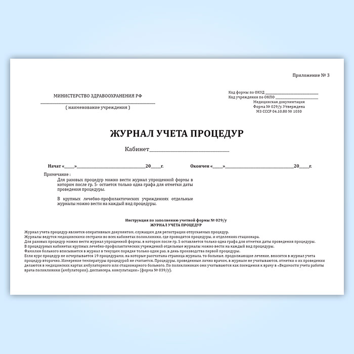 Журнал учета процедур (форма № 029/у) в Твери купить