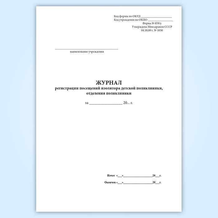 Журнал регистрации посещений изолятора детской поликлиники, отделения поликлиники (форма 059/У) в Твери купить