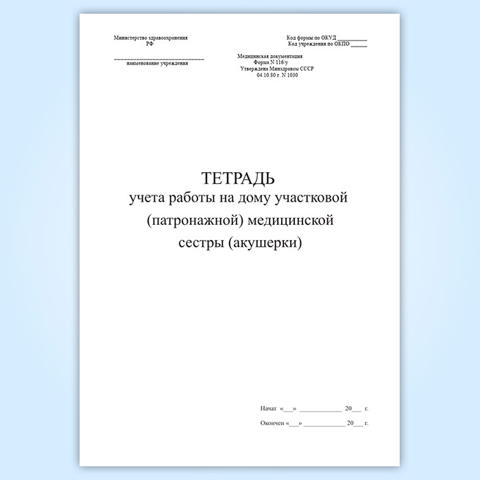 Тетрадь учета работы на дому участковой (патронажной) медицинской сестры (акушерки) (форма 116/у) в Твери купить
