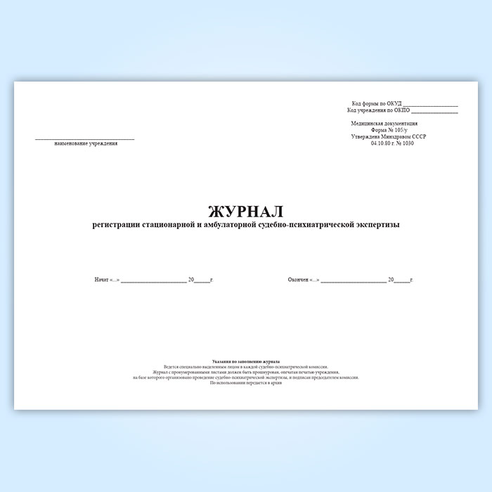 Журнал регистрации стационарной и амбулаторной судебно-психиатрической экспертизы (форма 105/у) в Твери купить