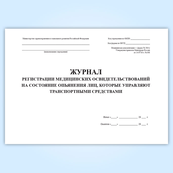 Журнал регистрации медицинских освидетельствований на состояние опьянения лиц, которые управляют транспортными средствами (форма 304/у) в Твери купить