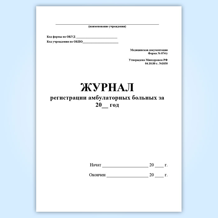 Журнал регистрации амбулаторных больных (форма 074/у) в Твери купить
