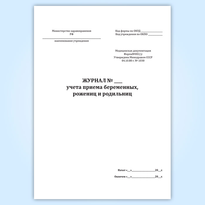 Журнал учета приема беременных, рожениц и родильниц (форма 002/у) в Твери купить