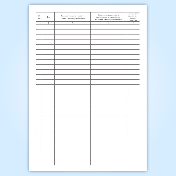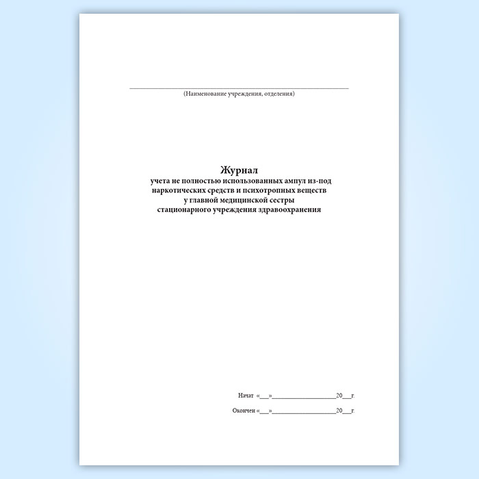 Журнал учета не полностью использованных ампул из-под наркотических средств и психотропных веществ у главной медицинской сестры стационарного учреждения здравоохранения в Твери купить